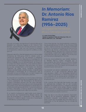 Este año, el Colegio de Ingenieros Civiles de Chihuahua Como líder gremial, fue vicepresidente y posterior- AÑO 33, NÚM. 203 / JUL - AGO 2025