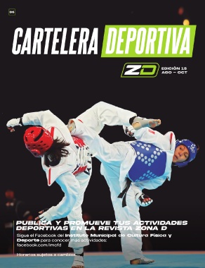 06 EDICIÓN 15 AGO - OCT PDUE PBOLIRCTAIVYASPREONMLUAERVEEVTISUTSAAZCOTNIVAI DDADES Sigue el Facebook del Instituto Municipal de Cultura Física y Deporte para conocer más actividades: facebook.com/imcfd Horarios sujetos a cambios.