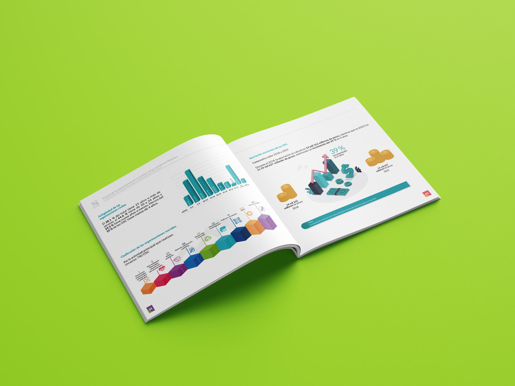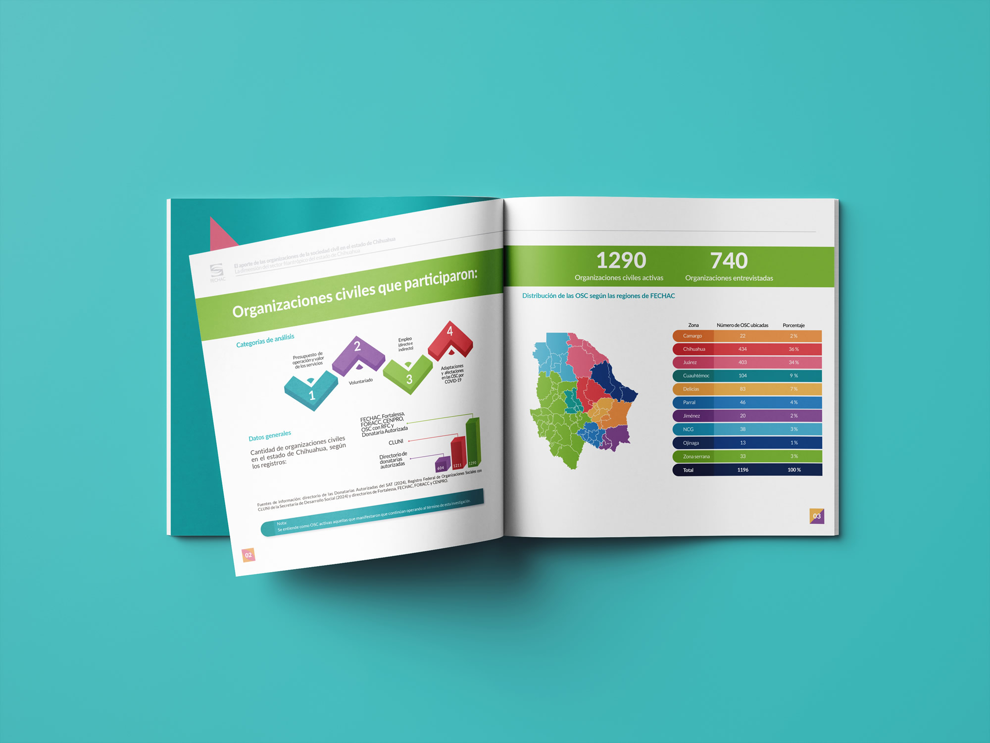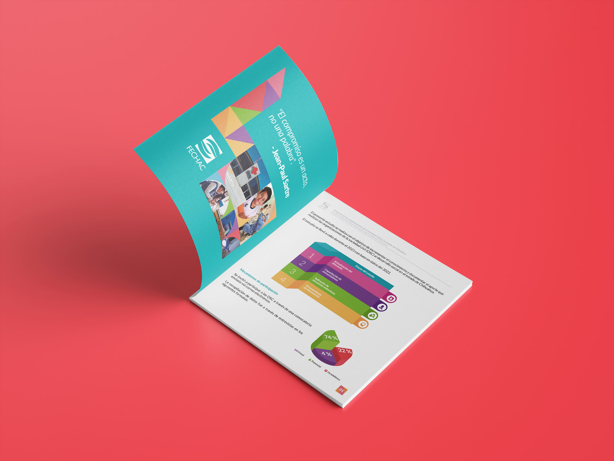 Apoyamos a FECHAC en la elaboración de un cuadernillo que presenta de manera gráfica la contribución de las organizaciones de la sociedad civil en el estado de Chihuahua. Para su diseño, se optó por una propuesta colorida, clara y visualmente atractiva, que facilitara la comprensión de la información.